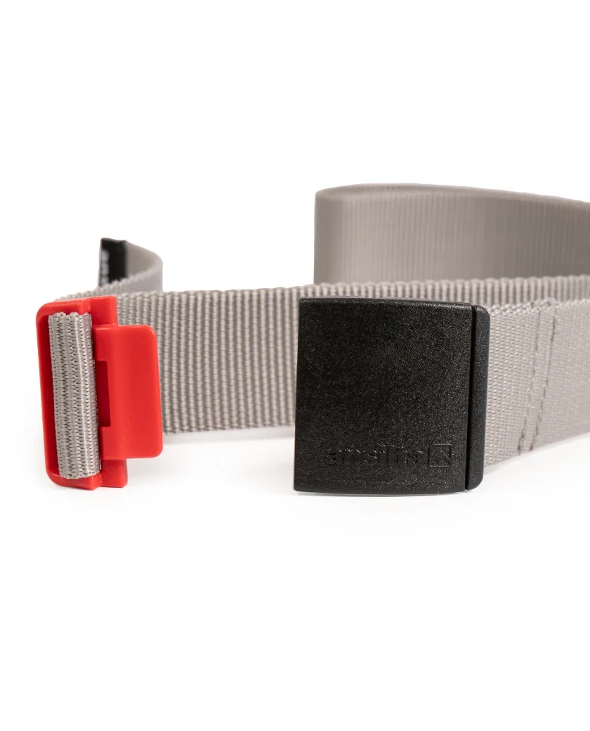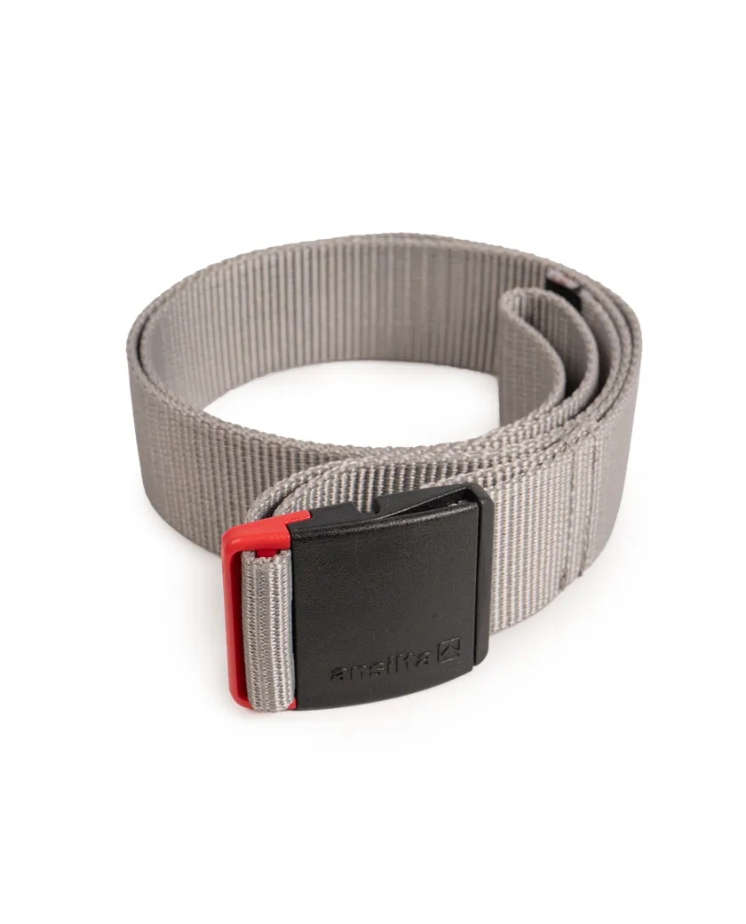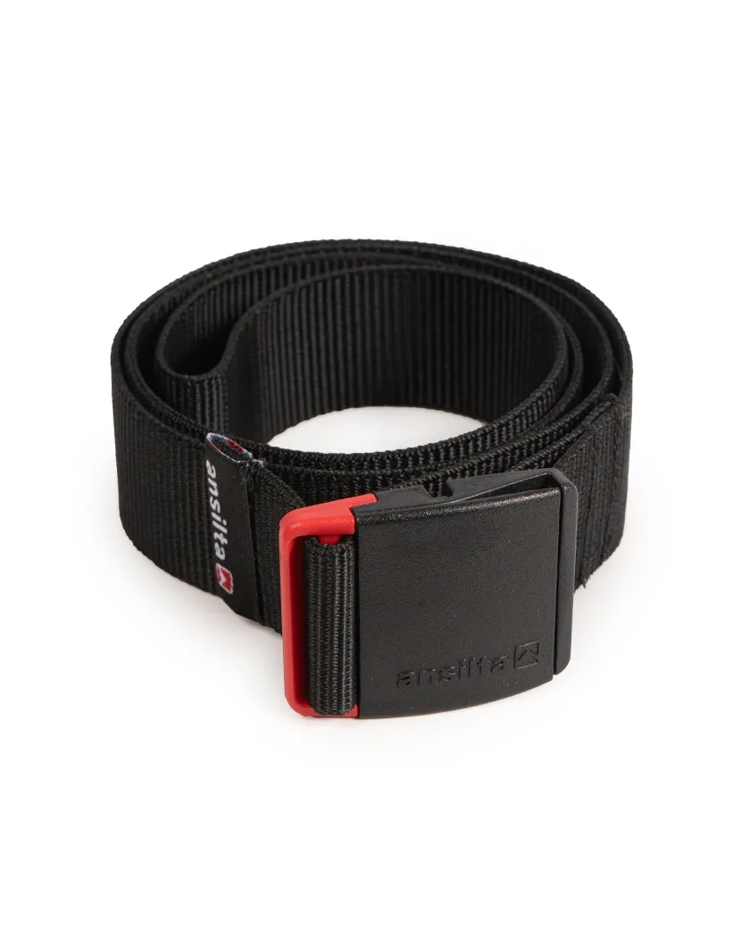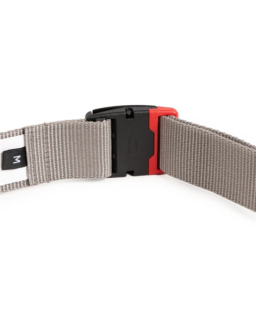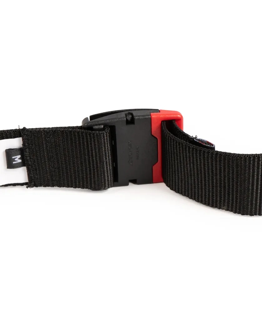 Cinturón liviano confeccionado con una cinta de Nylon de 32 mm y una hebilla plástica de accionamiento frontal.