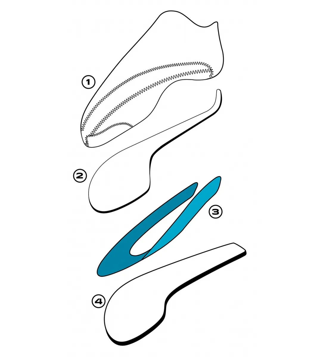La inserción Flexan de 1 mm distribuye la fuerza por todo el pie y permite una excelente flexibilidad en la parte trasera del zapato.