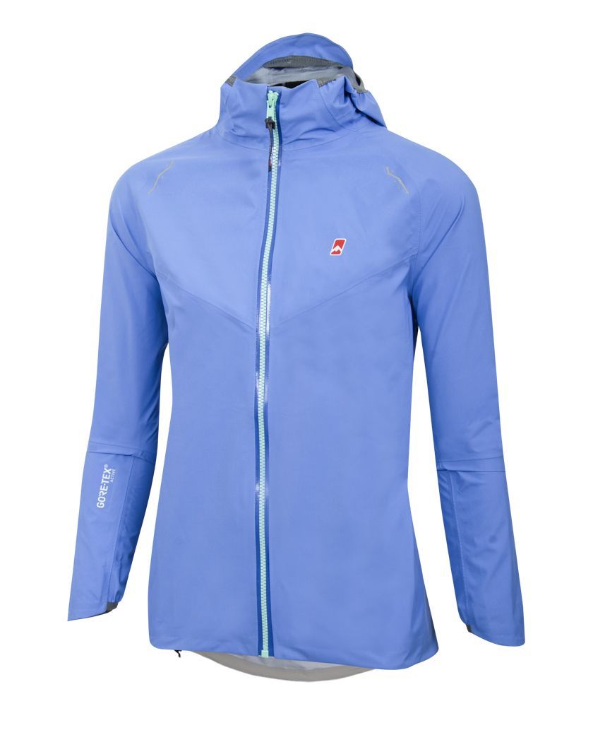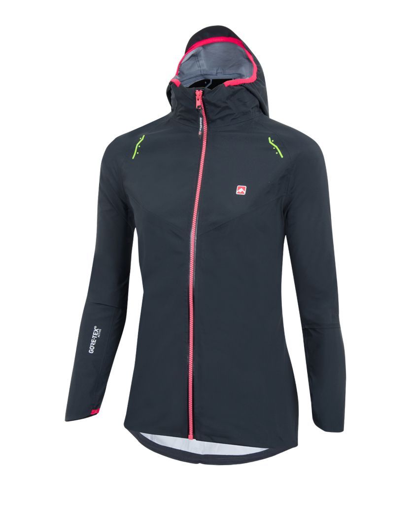 Esta prenda innovadora tiene todo lo que una corredora busca al hacer su actividad en condiciones extremas: primordialmente el bajo peso, es una prenda muy ligera y sumado el calce -pensado de manera estricta para corredoras- hacen que la campera sea muy cómoda. Las mangas un poco más largas que lo convencional, con el codo premoldeado están pensadas desde el confort en plena actividad aeróbica. Los puños son parcialmente elastizados y tienen una protección que cubre parte de la mano. El ajuste de la cintura se proporciona por medio de un elástico y tanca, ésta última se encuentra en la parte trasera de la campera. La capucha cuenta con los bordes elastizados y tiene un ajuste horizontal arriba de la nuca, además cuenta con una pequeña visera laminada la cual se puede doblar en caso de no querer usarla. Tiene un bolsillo interno pegado. Sólo tiene un cierre, el frontal, éste es estanco impidiendo el paso del agua y aire. Las ventilaciones axilares son detalles de las uniones de piezas, se decidió evitar el uso de cierres para reducir aun más el peso de la prenda. Todas las costuras son termoselladas, la campera está confeccionada con tejido GORE-TEX® Active CKNIT el cual mejora la transpirabilidad hasta en un 15 % en una construcción de 3 capas menos voluminosa y menos robusta. El suave forro de punto permite poner y sacar las prendas con más facilidad.