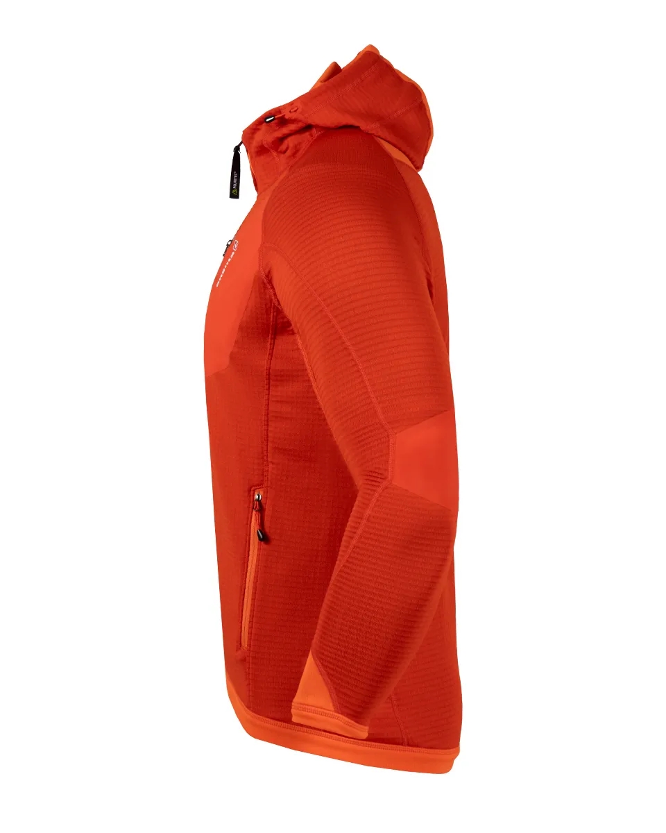 Campera de construcción híbrida diseñada para actividades aeróbicas, un infaltable para carreras de aventura donde el bajo peso, respirabilidad, secado rápido y compactabilidad son indispensables. Combina dos tejidos POLARTEC POWER GRID de diferente peso según las zonas que requieren mayor abrigo, o las que necesitan mayor ventilación, elasticidad y movilidad con menos volumen de tela. Estos tejidos poseen fibras recicladas, acabado odor resistant y protección solar.